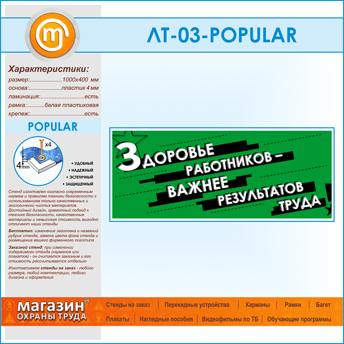 Предлагаем Вашему вниманию стенд с лозунгом «Здоровье работников важнее результатов труда»