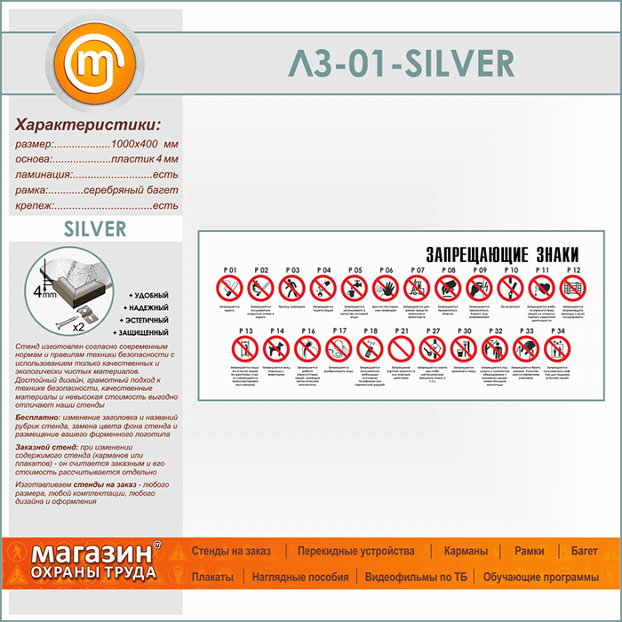 Стенд «Запрещающие знаки» (LZ-01-SILVER) в Ульяновске купить