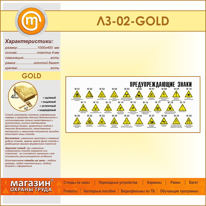 Стенд «Предупреждающие знаки» (LZ-02-GOLD) в Ульяновске купить