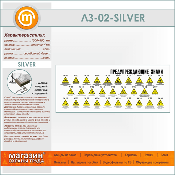 Стенд «Предупреждающие знаки» (LZ-02-SILVER) в Ульяновске купить