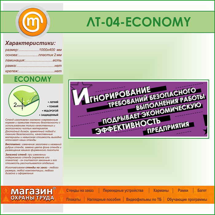 Лозунг «Игнорирование безопасного выполнения работы...» (LT-04-ECONOMY) в Ульяновске купить