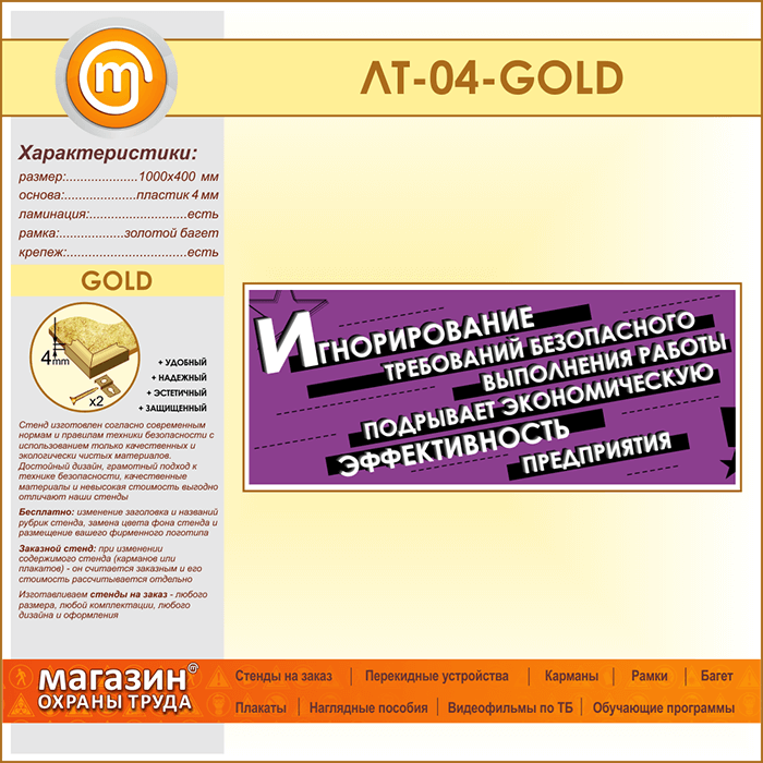 Лозунг «Игнорирование безопасного выполнения работы...» (LT-04-GOLD) в Ульяновске купить