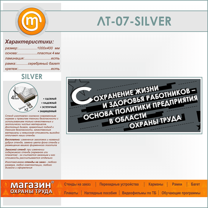 Лозунг «Сохранение жизни и здоровья работников...» (LT-07-SILVER) в Ульяновске купить