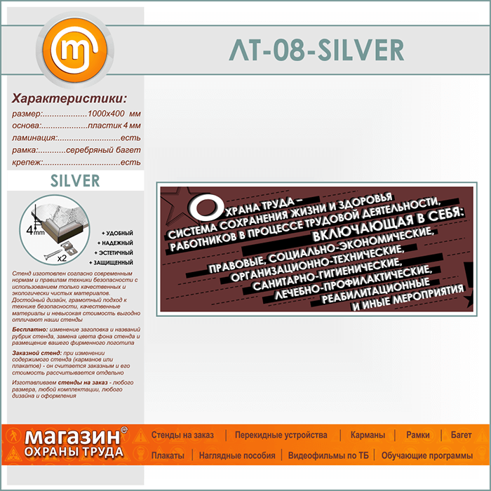 Лозунг «Охрана труда - система сохранения жизни и здоровья...» (LT-08-SILVER) в Ульяновске купить