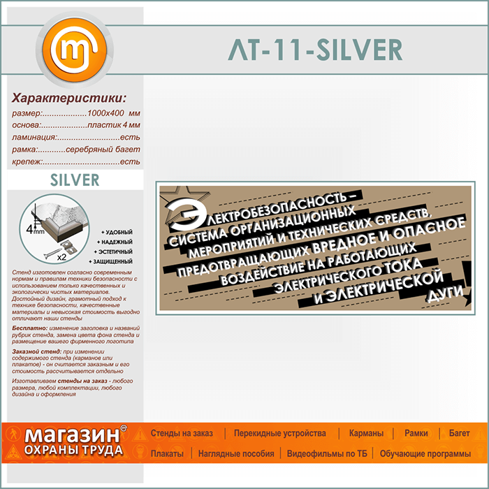 Лозунг «Электробезопасность - система мероприятий...» (LT-11-SILVER) в Ульяновске купить