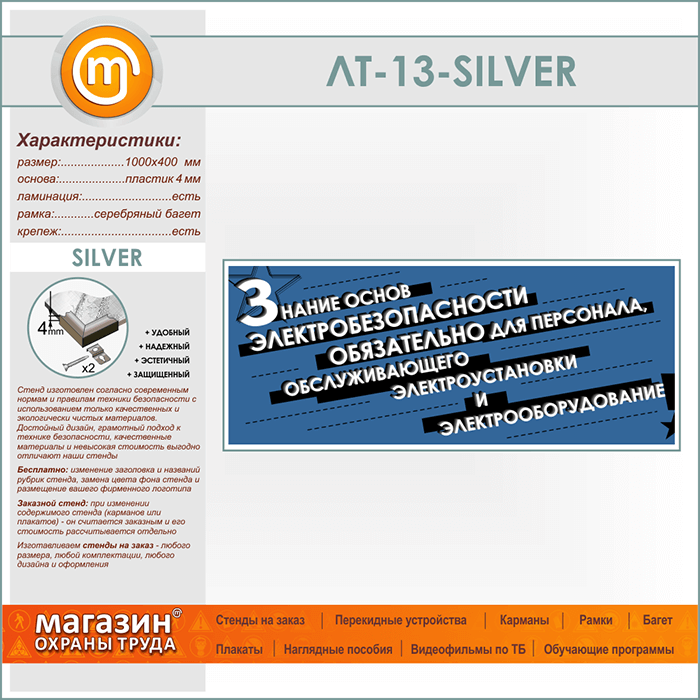 Лозунг «Знание основ электробезопасности обязательно...» (LT-13-SILVER) в Ульяновске купить