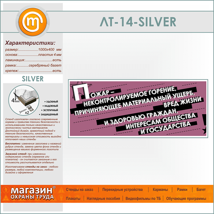 Лозунг «Пожар - неконтроллируемое горение...» (LT-14-SILVER) в Ульяновске купить