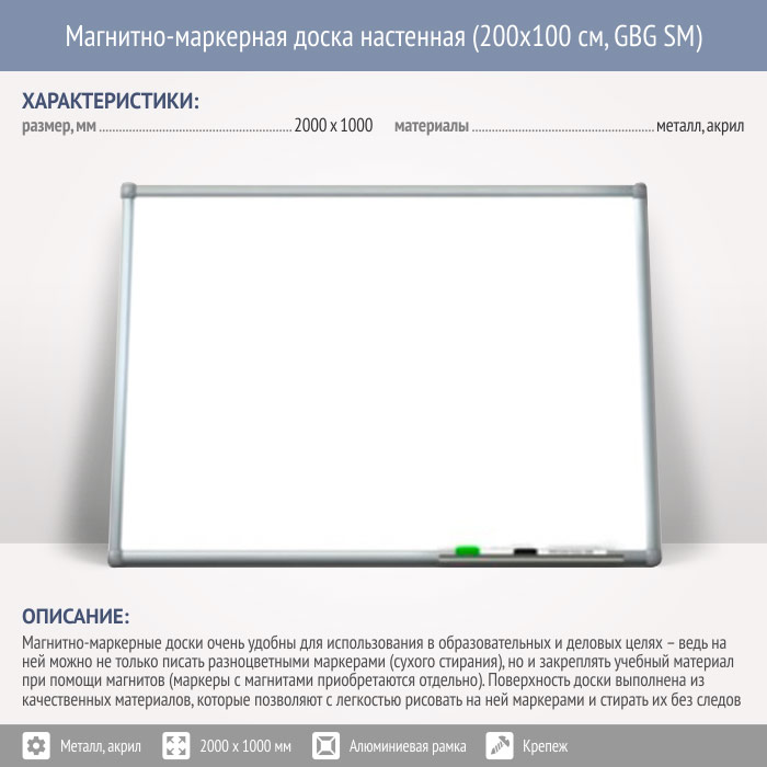Магнитно-маркерная доска настенная (200x100 см, GBG SM) в Ульяновске купить