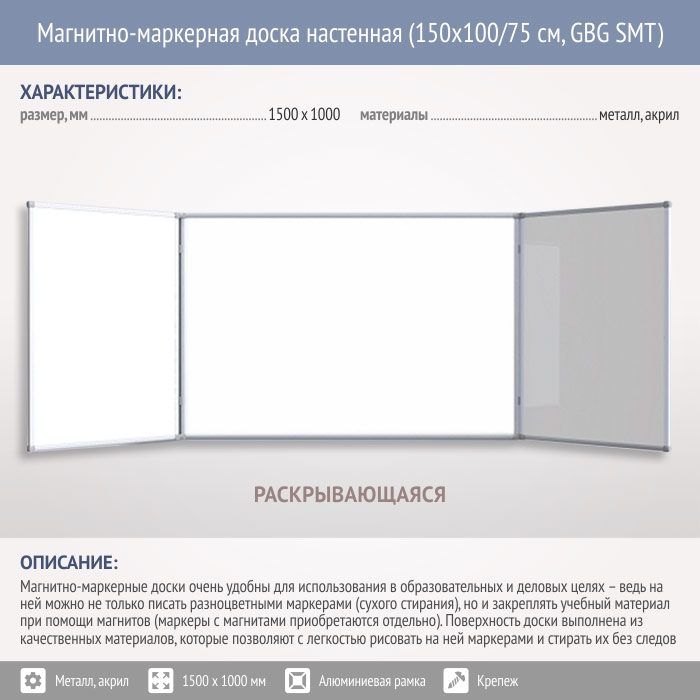 Магнитно-маркерная доска настенная (150x100/75 см, GBG SMT) в Ульяновске купить