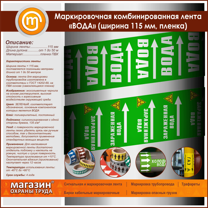 Маркировочная комбинированная лента «ВОДА» (ширина 115 мм, самоклеящаяся плёнка) в Ульяновске купить