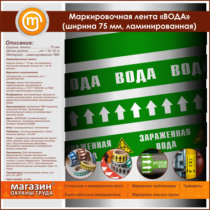 Маркировочная лента «ВОДА» (ширина 75 мм, самоклеящаяся плёнка с ламинированием) в Ульяновске купить