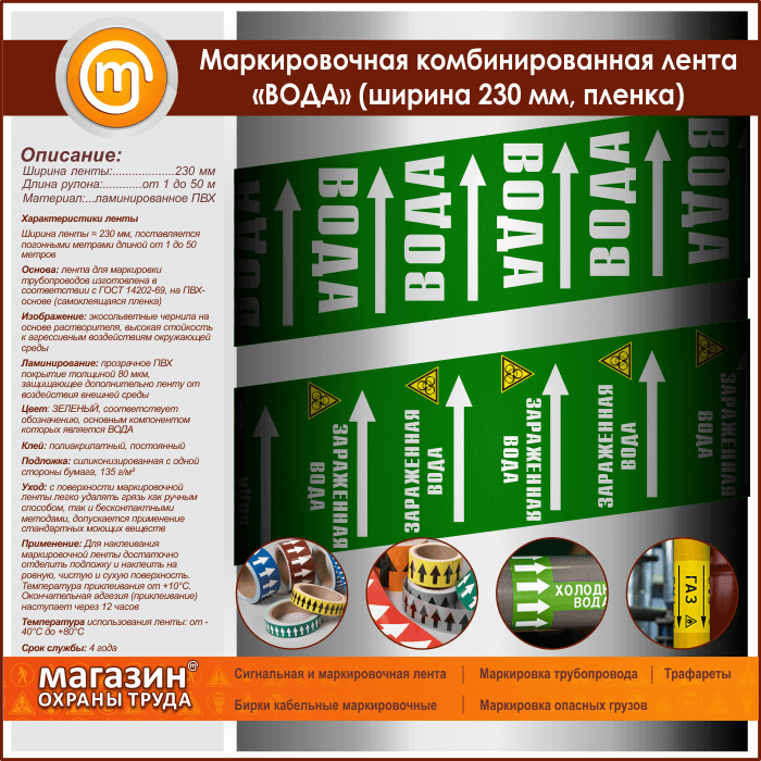 Маркировочная комбинированная лента «ВОДА» (ширина 230 мм, самоклеящаяся плёнка с ламинированием) в Ульяновске купить