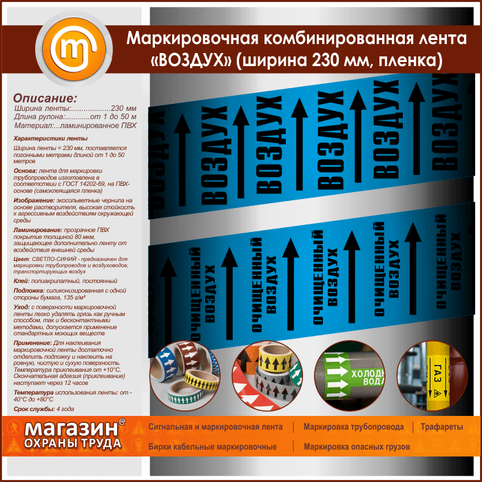 Маркировочная комбинированная лента «ВОЗДУХ» (ширина 230 мм, самоклеящаяся плёнка) в Ульяновске купить
