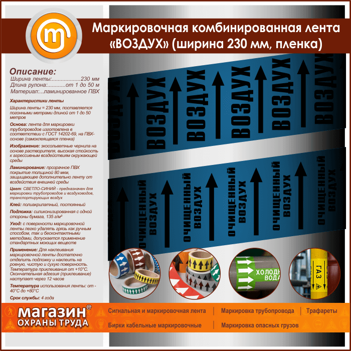 Маркировочная комбинированная лента «ВОЗДУХ» (ширина 230 мм, самоклеящаяся плёнка с ламинированием) в Ульяновске купить