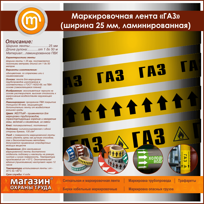 Маркировочная лента «ГАЗ» (ширина 25 мм, самоклеящаяся плёнка с ламинированием) в Ульяновске купить