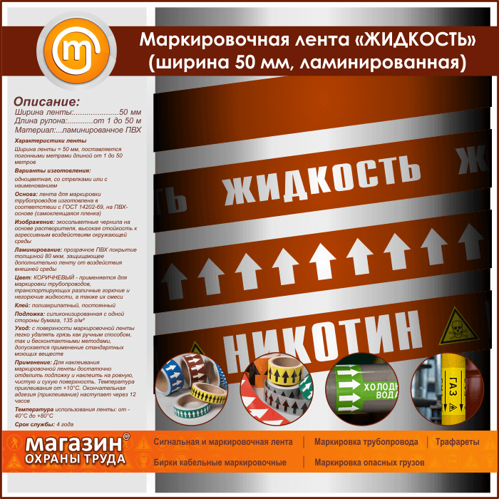 Маркировочная лента «ЖИДКОСТЬ» (ширина 50 мм, самоклеящаяся плёнка) в Ульяновске купить