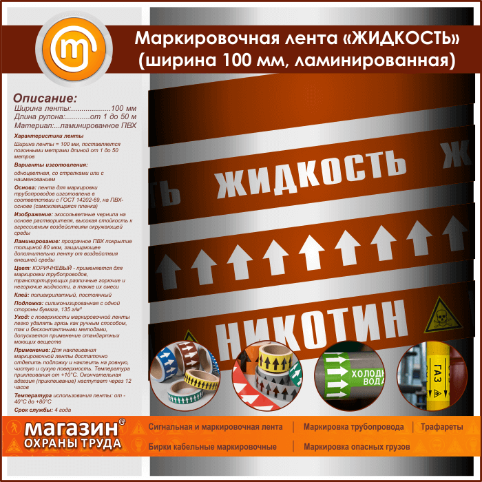 Маркировочная лента «ЖИДКОСТЬ» (ширина 100 мм, самоклеящаяся плёнка) в Ульяновске купить