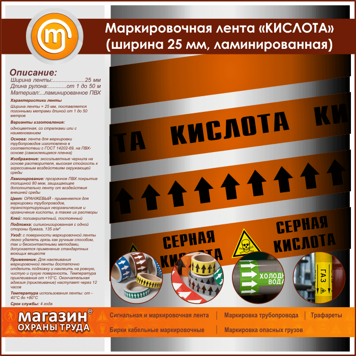 Маркировочная лента «КИСЛОТА» (ширина 25 мм, самоклеящаяся плёнка с ламинированием) в Ульяновске купить
