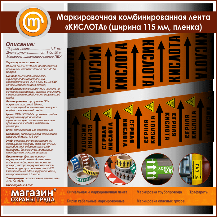 Маркировочная комбинированная лента «КИСЛОТА» (ширина 115 мм, самоклеящаяся плёнка с ламинированием) в Ульяновске купить