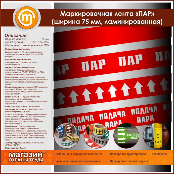 Маркировочная лента «ПАР» (ширина 75 мм, самоклеящаяся плёнка) в Ульяновске купить