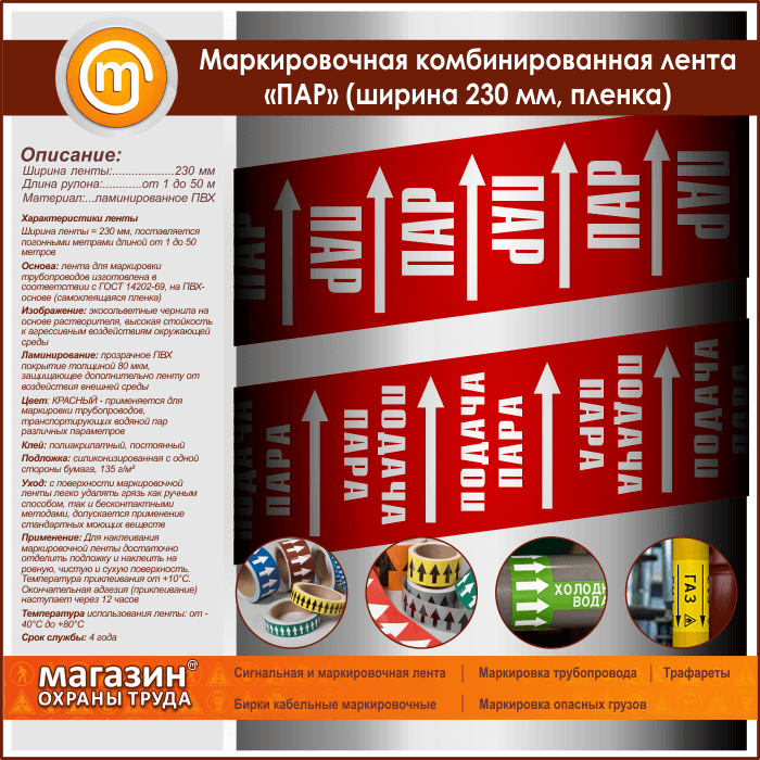 Маркировочная комбинированная лента «ПАР» (ширина 230 мм, самоклеящаяся плёнка с ламинированием) в Ульяновске купить