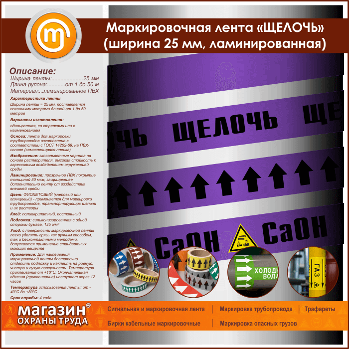 Маркировочная лента «ЩЕЛОЧЬ» (ширина 25 мм, самоклеящаяся плёнка с ламинированием) в Ульяновске купить