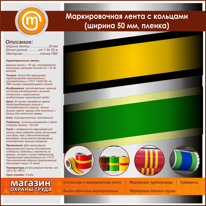 Маркировочная лента с кольцами (ширина 50 мм, самоклеящаяся плёнка) в Ульяновске купить