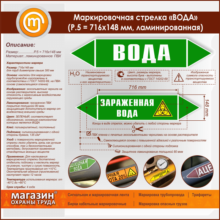 Маркировочная стрелка «ВОДА» (P.5 = 716х148 мм, самоклеящаяся плёнка с ламинированием) в Ульяновске купить
