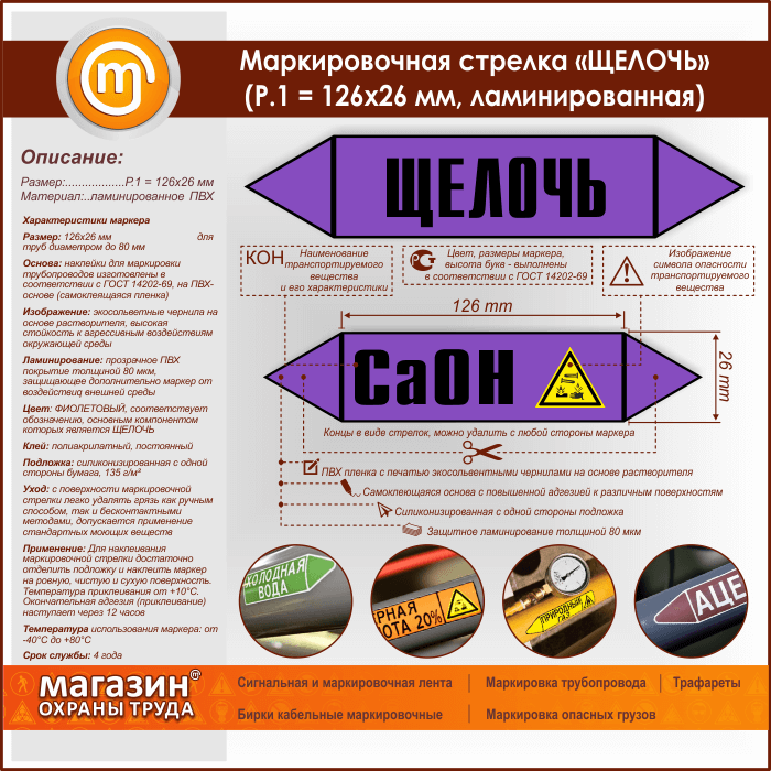 Маркировочная стрелка «ЩЕЛОЧЬ» (Р.1 = 126х26 мм, самоклеящаяся плёнка с ламинированием) в Ульяновске купить