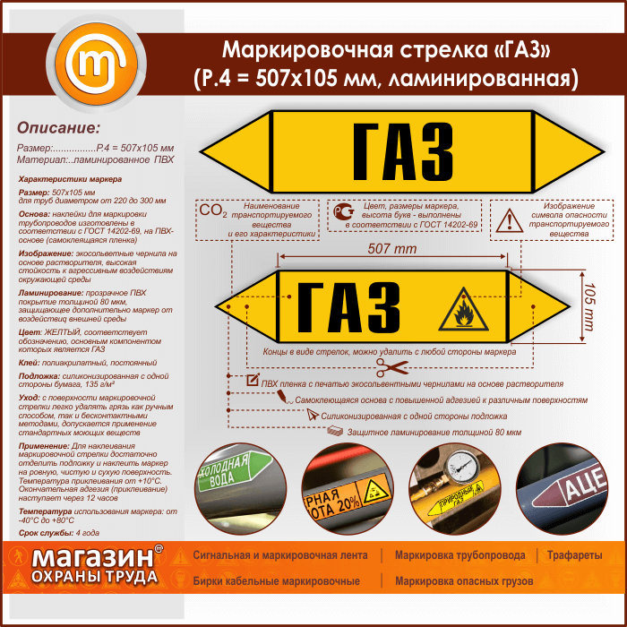 Маркировочная стрелка «ГАЗ» (P.4 = 507х105 мм, самоклеящаяся плёнка с ламинированием) в Ульяновске купить