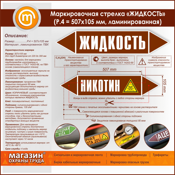 Маркировочная стрелка «ЖИДКОСТЬ»(P.4 = 507х105 мм, самоклеящаяся плёнка с ламинированием) в Ульяновске купить