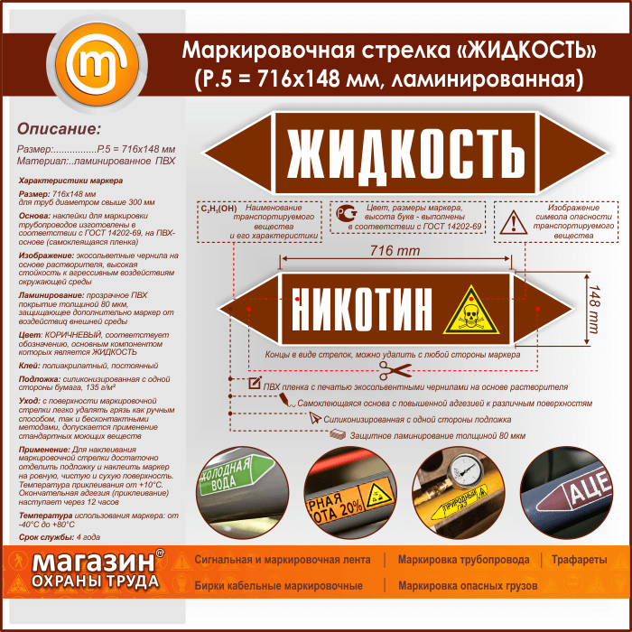 Маркировочная стрелка «ЖИДКОСТЬ» (P.5 = 716х148 мм, самоклеящаяся плёнка с ламинированием) в Ульяновске купить
