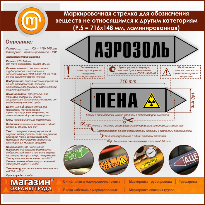 Маркировочная стрелка «ПРОЧИЕ ВЕЩЕСТВА» (P.5 = 716х148 мм, самоклеящаяся плёнка с ламинированием) в Ульяновске купить
