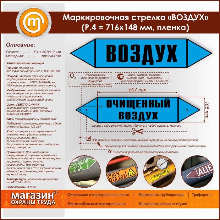 Маркировочная стрелка «ВОЗДУХ» (P.4 = 507х105 мм, самоклеящаяся плёнка) в Ульяновске купить