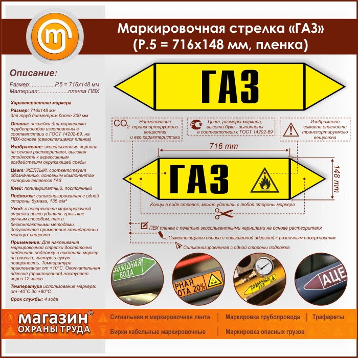 Маркировочная стрелка «ГАЗ» (P.5 = 716х148 мм, самоклеящаяся плёнка) в Ульяновске купить
