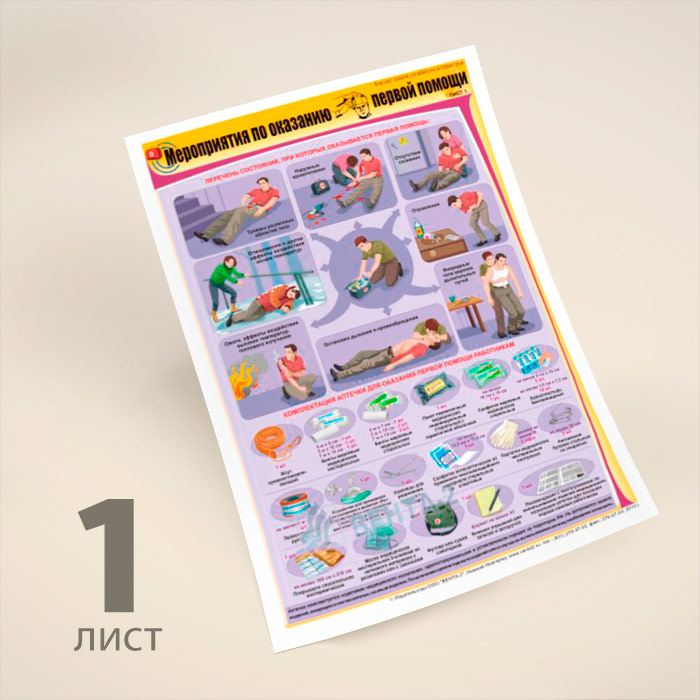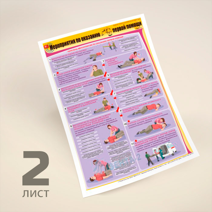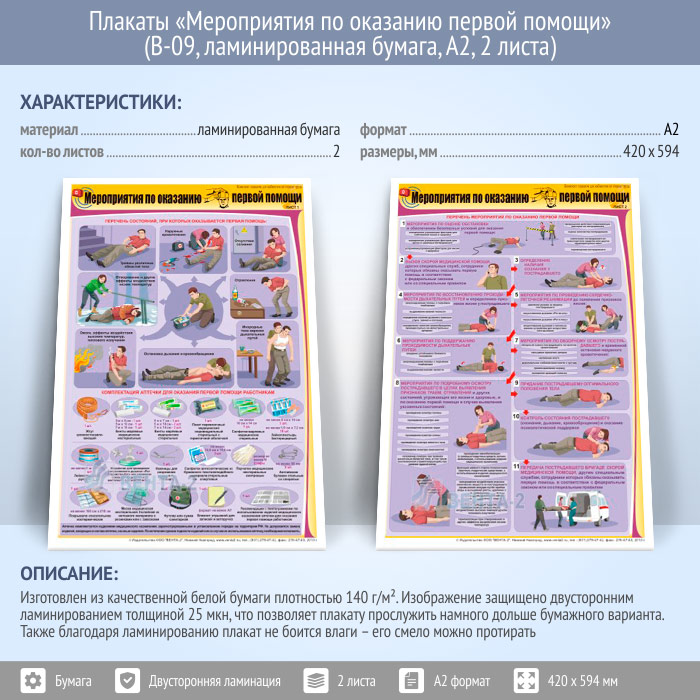 Плакаты «Мероприятия по оказанию первой помощи» (В-09, ламинированная бумага, А2, 2 листа) в Ульяновске купить