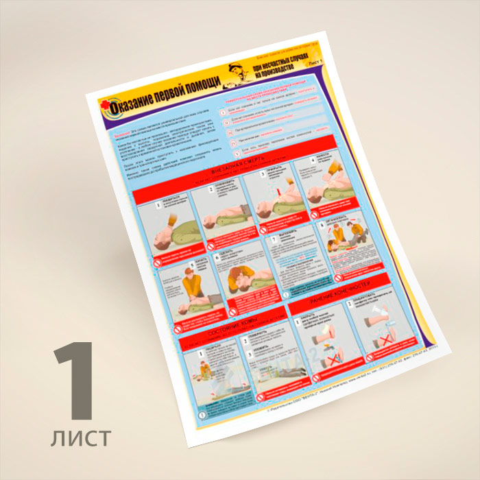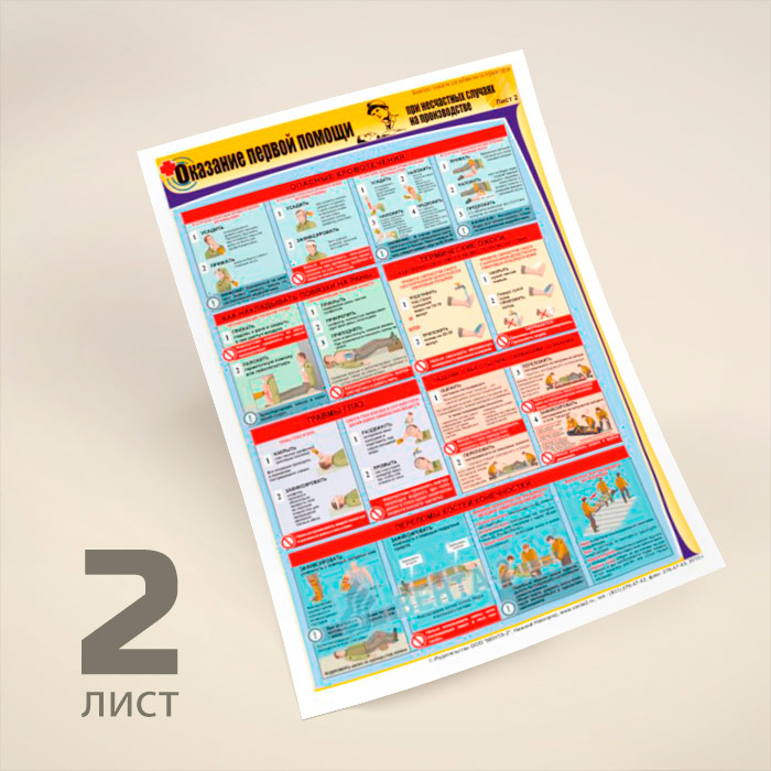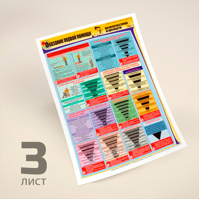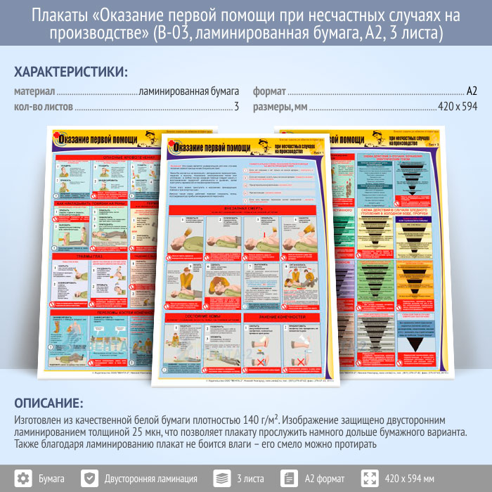 Плакаты «Оказание первой помощи при несчастных случаях на производстве» (В-03, ламинированная бумага, А2, 3 листа) в Ульяновске купить