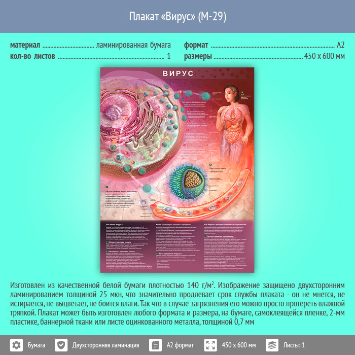 Плакат «Вирус» (М-29, ламинированная бумага, А2, 1 лист) в Ульяновске купить