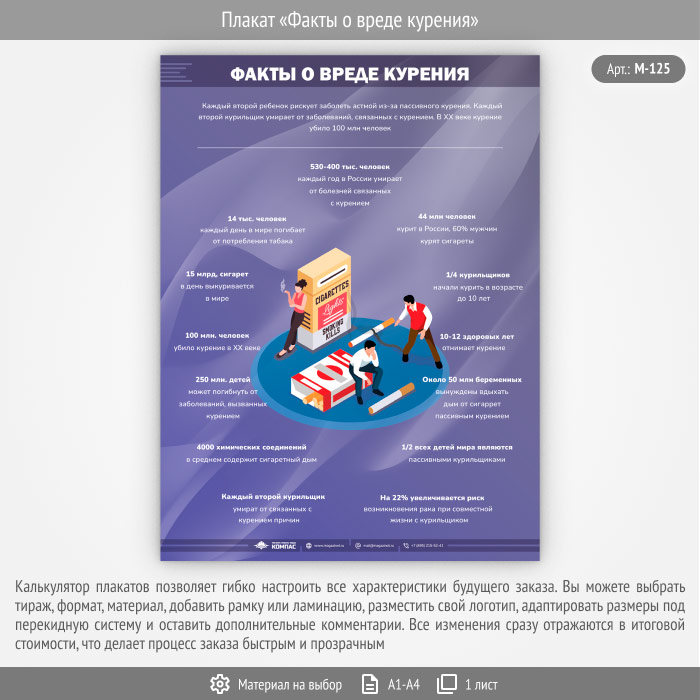 Плакат «Факты о вреде курения» (М-125, 1 лист) в Ульяновске купить