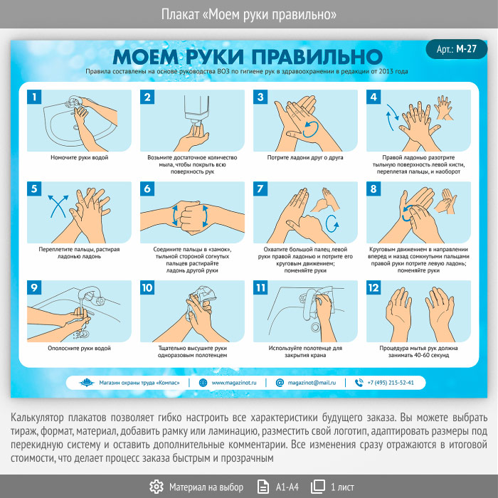 Плакат «Моем руки правильно» (М-27, 1 лист) в Ульяновске купить