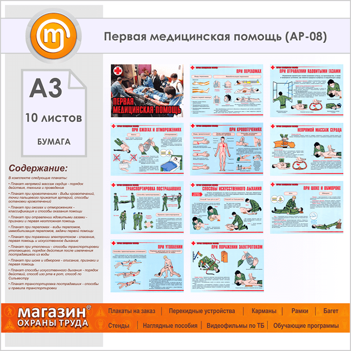 Плакаты «Первая медицинская помощь» (АР-08, бумага, А3, 10 листов) в Ульяновске купить