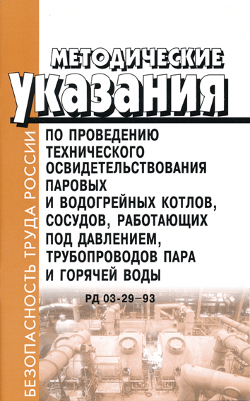 Методические указания по проведению технического освидетельствования паровых и водогрейных котлов, сосудов, работающих под давлением, трубопроводов пара и горячей воды. РД 03-29-93 (ЛД-103) в Ульяновске купить