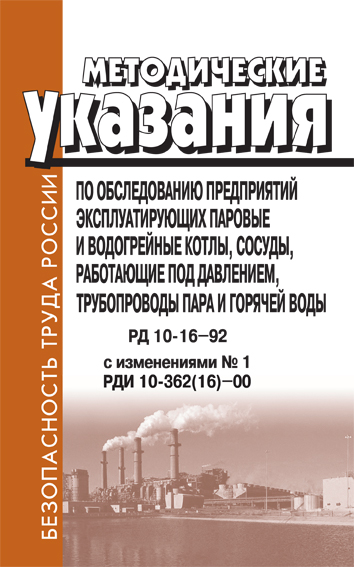 Методические указания по обследованию предприятий, эксплуатирующих паровые и водогрейные котлы, сосуды, работающие под давлением, трубопроводы пара и горячей воды. РД 10-16-92 (ЛД-112) в Ульяновске купить