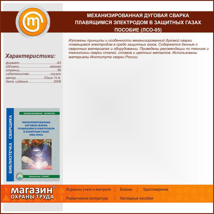 Механизированная дуговая сварка плавящимся электродом в защитных газах – пособие (ЛСО-05) в Ульяновске купить