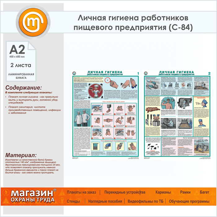 Плакаты «Личная гигиена работников пищевого предприятия» (С-84, ламинированная бумага, А2, 2 листа) в Ульяновске купить