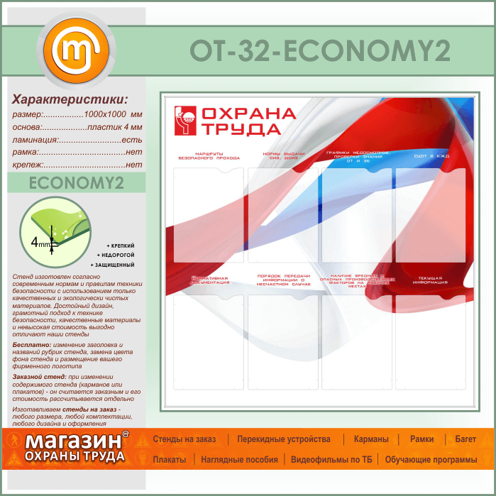 Стенд «Охрана труда» с 8 карманами (OT-32-ECONOMY2) в Ульяновске купить