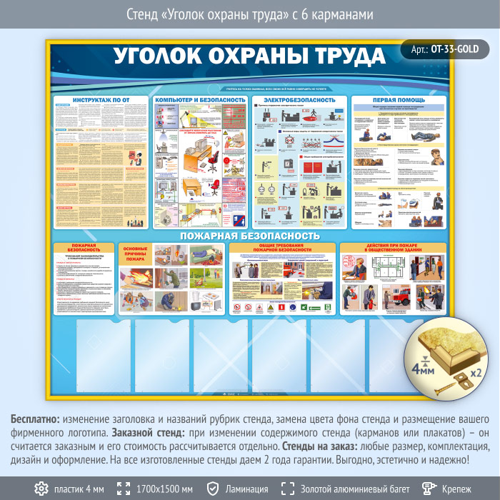 Стенд «Уголок охраны труда» с 6 карманами (OT-33-GOLD) в Ульяновске купить
