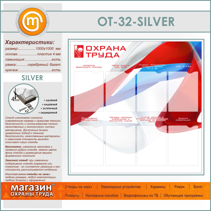 Стенд «Охрана труда» с 8 карманами (OT-32-SILVER) в Ульяновске купить