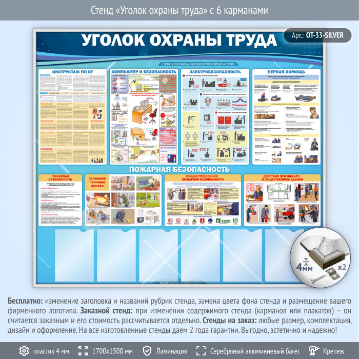 Стенд «Уголок охраны труда» с 6 карманами (OT-33-SILVER) в Ульяновске купить
