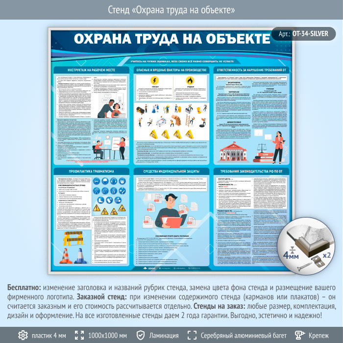 Стенд «Охрана труда на объекте» (OT-34-SILVER) в Ульяновске купить